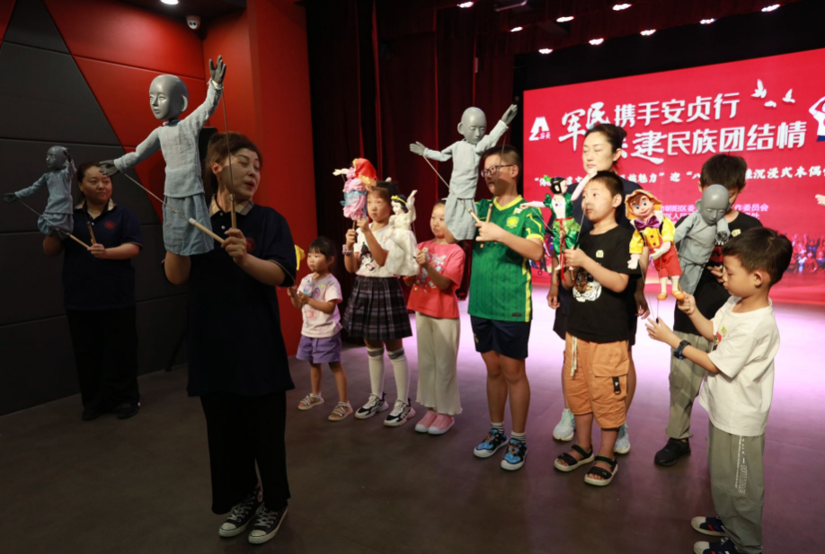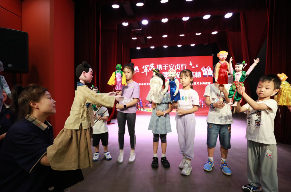 8月1日,为加强与部队军人家庭的交流互动,做好“安民拥军”双拥工作,安贞街道联合中国木偶剧院,举办“传承非遗文化 感受民族魅力”迎“八一”军娃沉浸式木偶体验活动。来自驻安贞部队200余名军人家庭儿童、家属参加了活动,从视、听、触、感上沉浸式感受非遗,探寻中华优秀传统木偶艺术魅力。