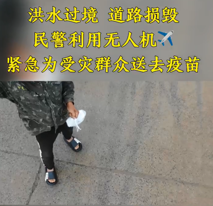 尚志市公安局民警克服不良天气等多方因素,为群众购买疫苗,并利用无人机及时将疫苗送到群众的手中。