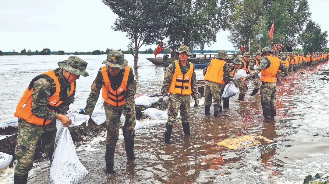随着松花江、嫩江干流洪水继续演进,部分河段超警戒水位,东北部分地区江河堤防和蓄滞洪区围堤巡查防守压力增大。截至记者发稿时,黑龙江省军区累计出动民兵5000余人,开展转移被困群众、加固堤坝、转运物资等工作,全力保障人民群众生命财产安全。