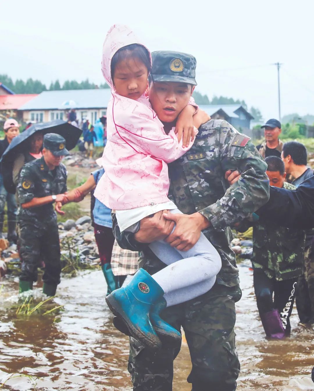 8月7日,武警黑龙江总队牡丹江支队官兵赶赴长汀镇七山村,解救转移被困群众。刘飞摄