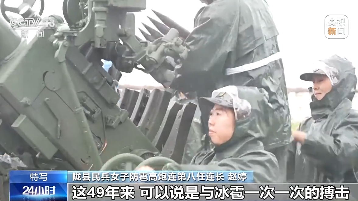 陕西陇县地处青藏高原与黄土高原冷热强气流的交汇点,是陕西有名的多雹区,年均降冰雹16次左右,最多的一年达37次,1973年的一次大冰雹,使全县16万亩农田颗粒无收。为了降低冰雹带来的影响,当地在1974年5月组建成立民兵女子防雹高炮连,在冰雹多发的山头设立炮点,利用退役的高炮打冰雹除冰雹。女子防雹连成立49年来,从最初的2个炮点,到现在的12个炮点,在每年5月到10月的冰雹多发期,恶云起、炮声响,打冰雹、护庄稼,这样紧张刺激的场面随时会上演。
