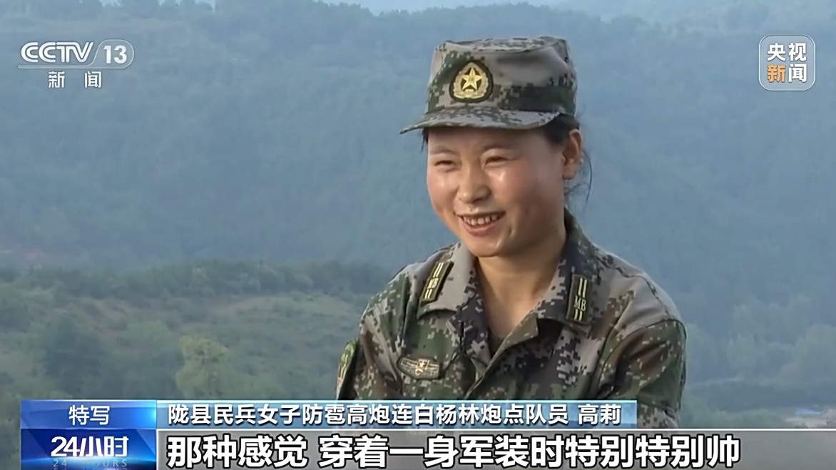 陇县民兵女子防雹高炮连白杨林炮点队员 毕思奇:之前有想过当兵,因为我身高的原因,还是挺遗憾的,但是在这的话,算是圆了我的一个梦吧。