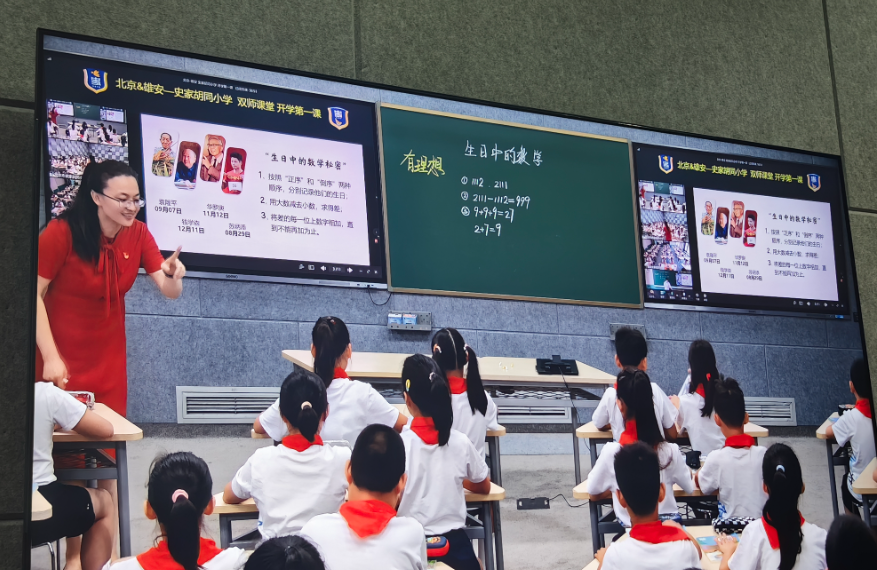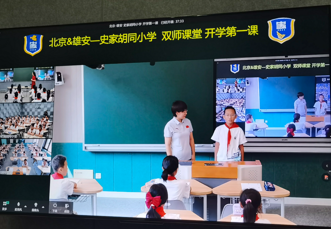 “北京的孩子你们好,我是雄安史家胡同小学老师许锦帅。”“雄安史家的孩子们好,我是北京史家胡同小学的老师刘伟男。”9月1日,雄安史家胡同小学正式开学,该校的老师与本部校区的老师云端相聚,共同开启新学期的第一课。
