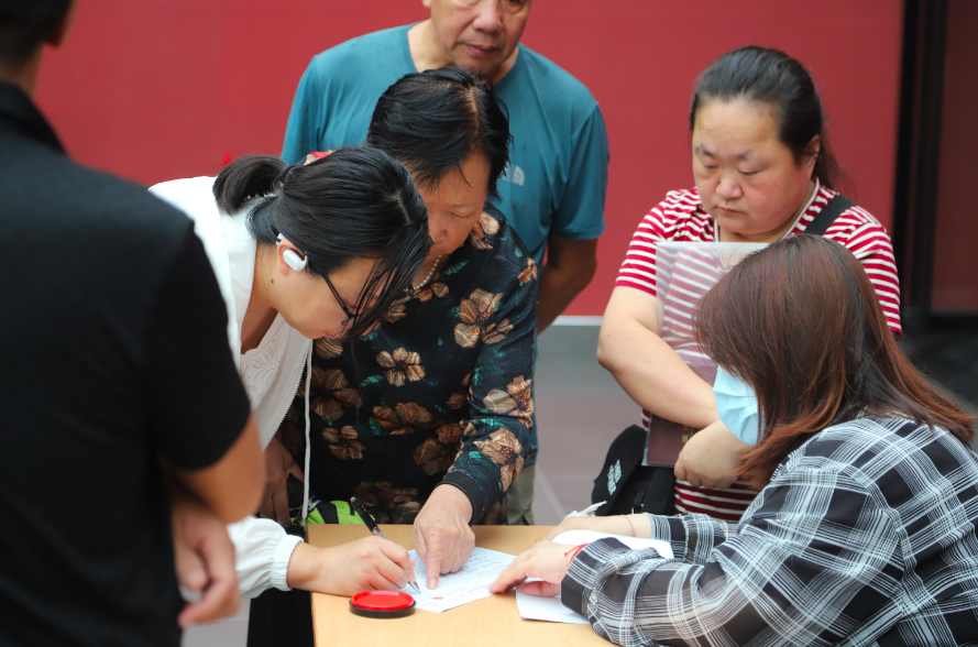 越来越多的居民来到现场,核对信息、领取证书、核对证书内信息、政策解答……现场秩序井然。
