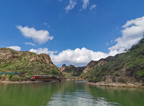 以桑干河命名的桑干河大峡谷全长44公里,在宣化段有23公里,斜贯宣化区王家湾乡全境。站在桑干河大峡谷怪石上,俯瞰桑干河,碧波万顷,峡谷幽深蜿蜒,嶂谷、隘谷相得益彰,地质地貌古老神奇。峡谷两岸高山耸峙,中间河水奔腾,悬崖陡峭相对,河道弯转狭窄,岭上奇峰突起,崖间异石林立,景观秀丽,气势磅礴。来到这里后,在一次次看河、走河、读河、品河的过程中溯流而上,愈是寻找源头,愈仿佛感受到绵延曲折的生命脐带。