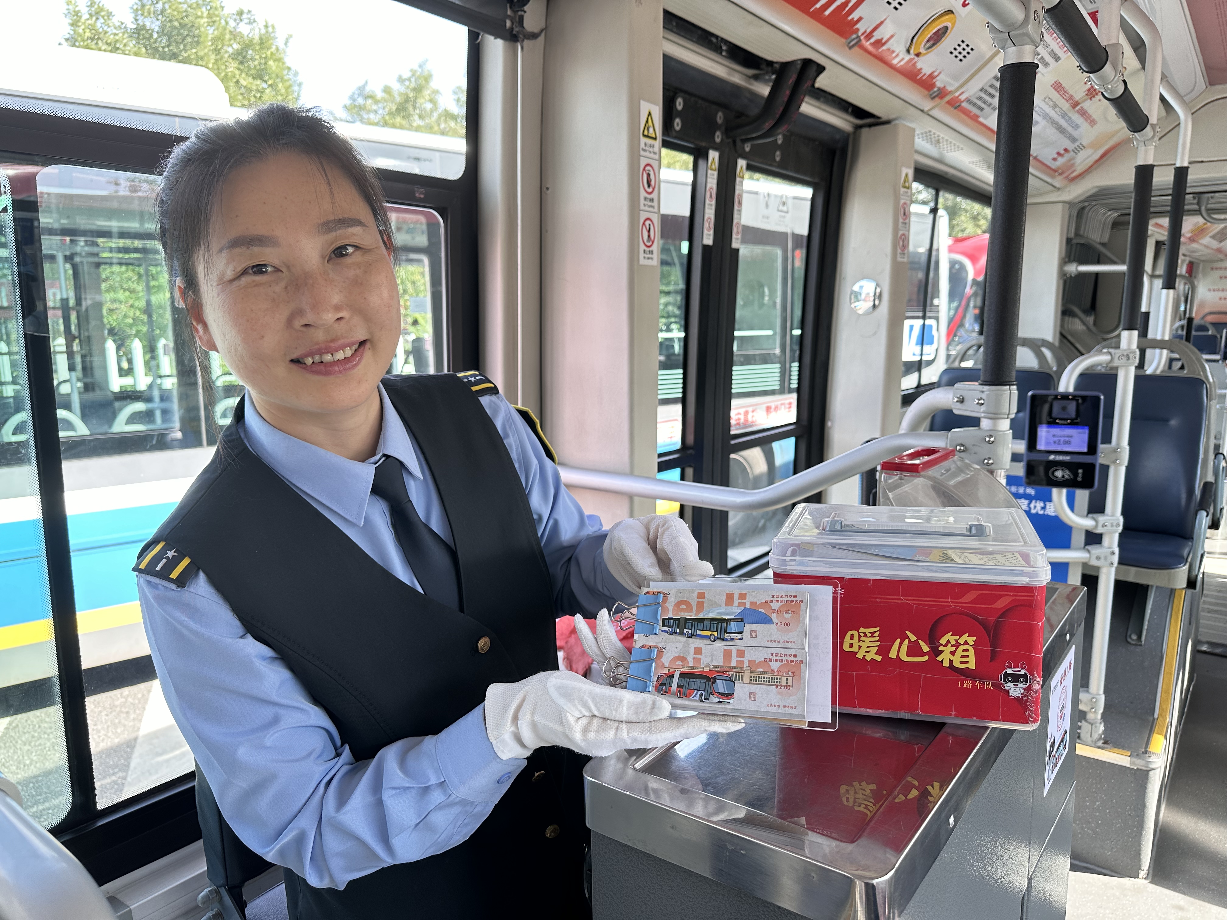 “这是我年轻时候坐过的公交车呀,我想要这张留个纪念,可以吗?”在北京公交集团1路公交车内,一位“常客”走到售票台边,看着与往日不同的“新鲜”车票说道。
