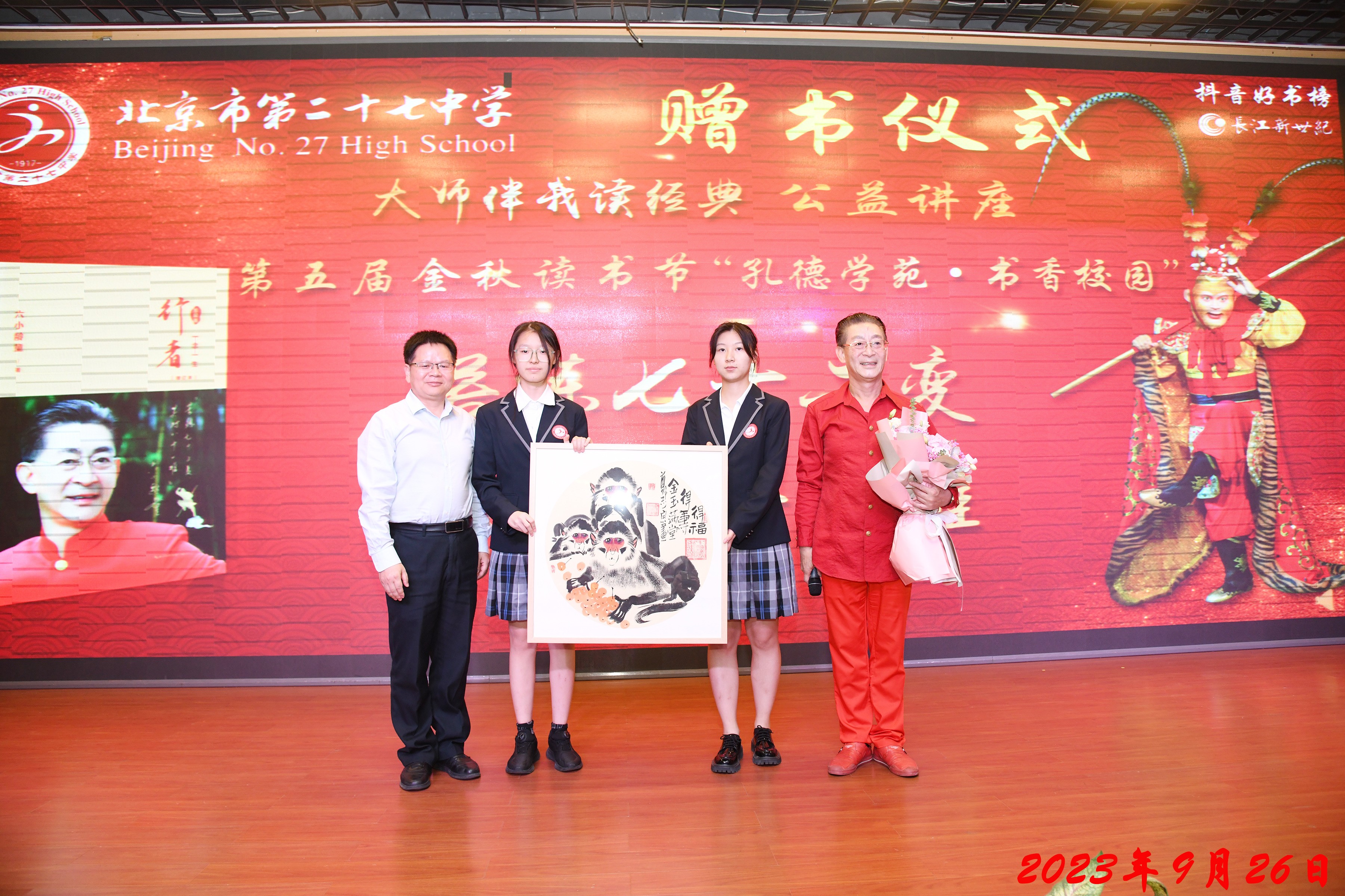9月26日下午,北京市第二十七中学(孔德中学)“孔德学苑·书香校园”第五届金秋读书节启动仪式在学校音乐厅举行,表演艺术家六小龄童出席现场,跟在场师生们分享了西游文化和“美猴王精神”。