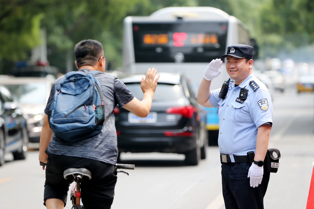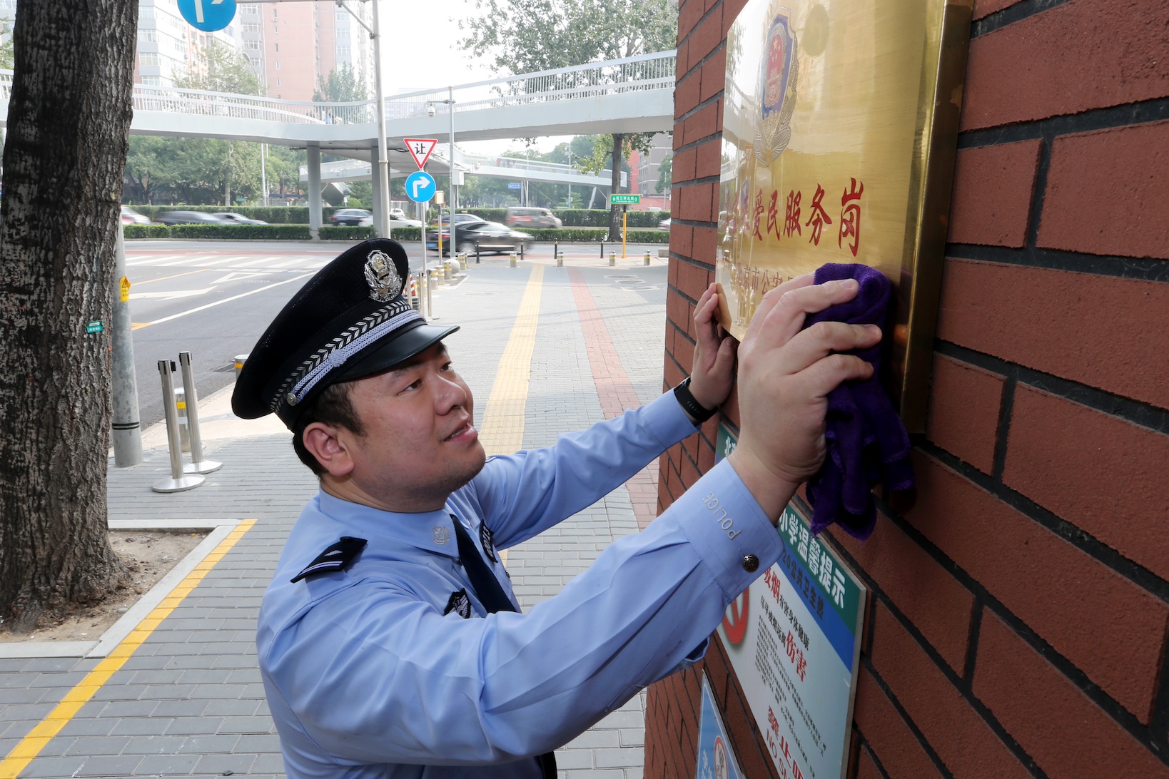 早上7点,侯腾飞就会到海淀区实验小学门口站岗执勤。“小朋友们排好队,跟紧警察叔叔……”为了打通学生安全入校的最后五十米,侯腾飞牵头号召交通协管员、家长等志愿者组建了爱民服务队。当送学生的车停靠在路边,侯腾飞学着当年高宝来的样子,一路小跑到车边,开门将学生接下车,护送学生过马路进校门,侯腾飞的身影一直穿梭在马路之间。