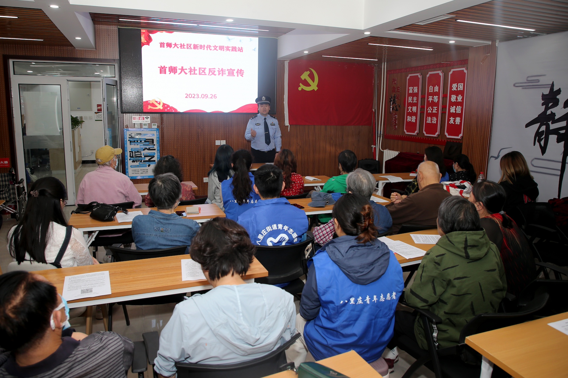 在对辖区老年人开展防范电信诈骗的宣传活动中,侯腾飞带着他的大学生志愿者们与老人“结对子”,利用青年人熟悉网络的特点,让老人更好理解电信网络诈骗和防范技巧。每次宣讲,侯腾飞都会组织志愿者们结合真实案例,拆解骗子的话术和常用手法,科普防诈技巧,让群众直呼“涨知识”!
