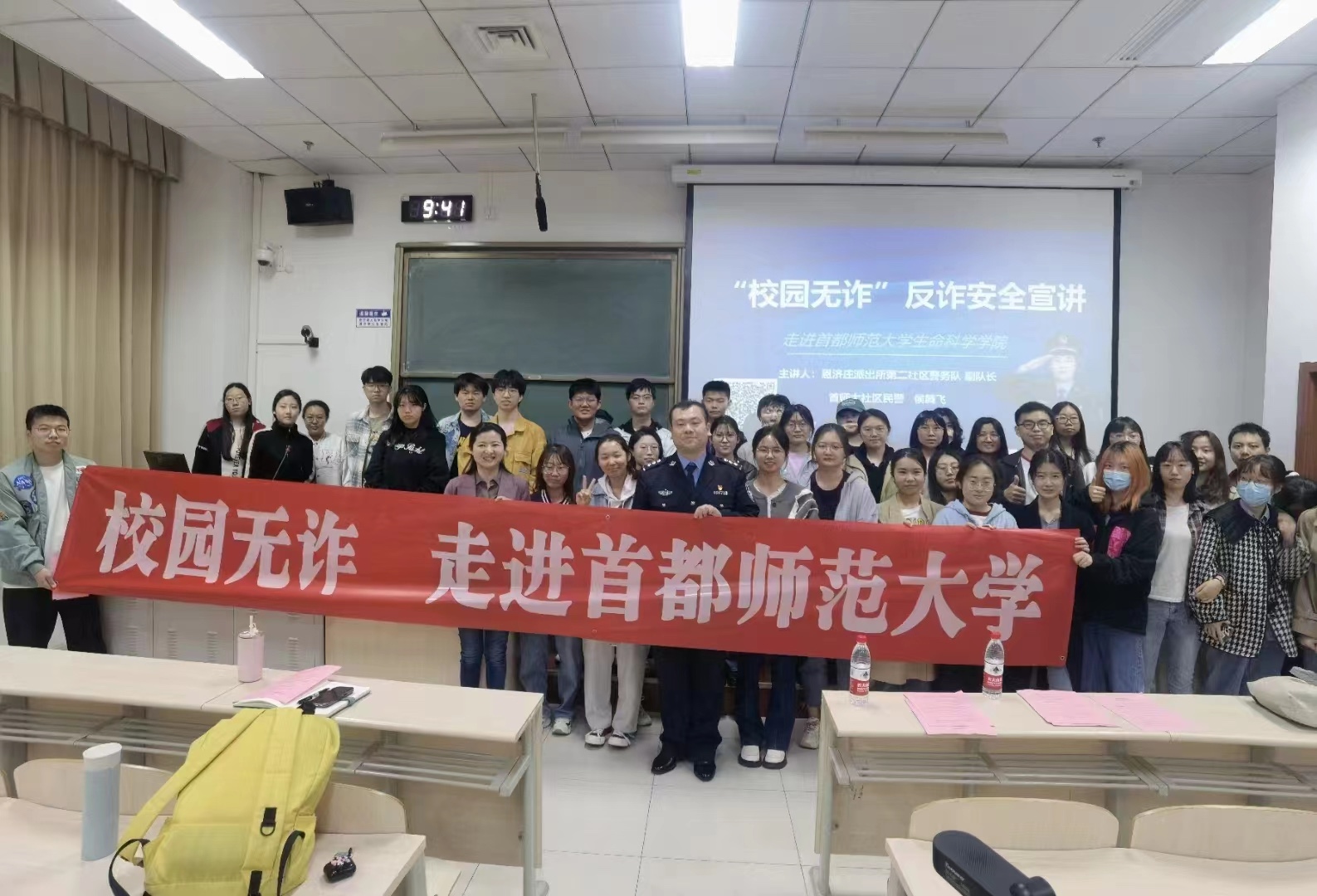 面对各类新型的电信网络诈骗,侯腾飞想到,辖区里首都师范大学的学生们既是站在各种新信息新技术最前沿的人,也是社会经验较少容易受不法侵害的人。他决定像宝来师傅一样,走进大学校园,去拉起一位位在校大学生的手。