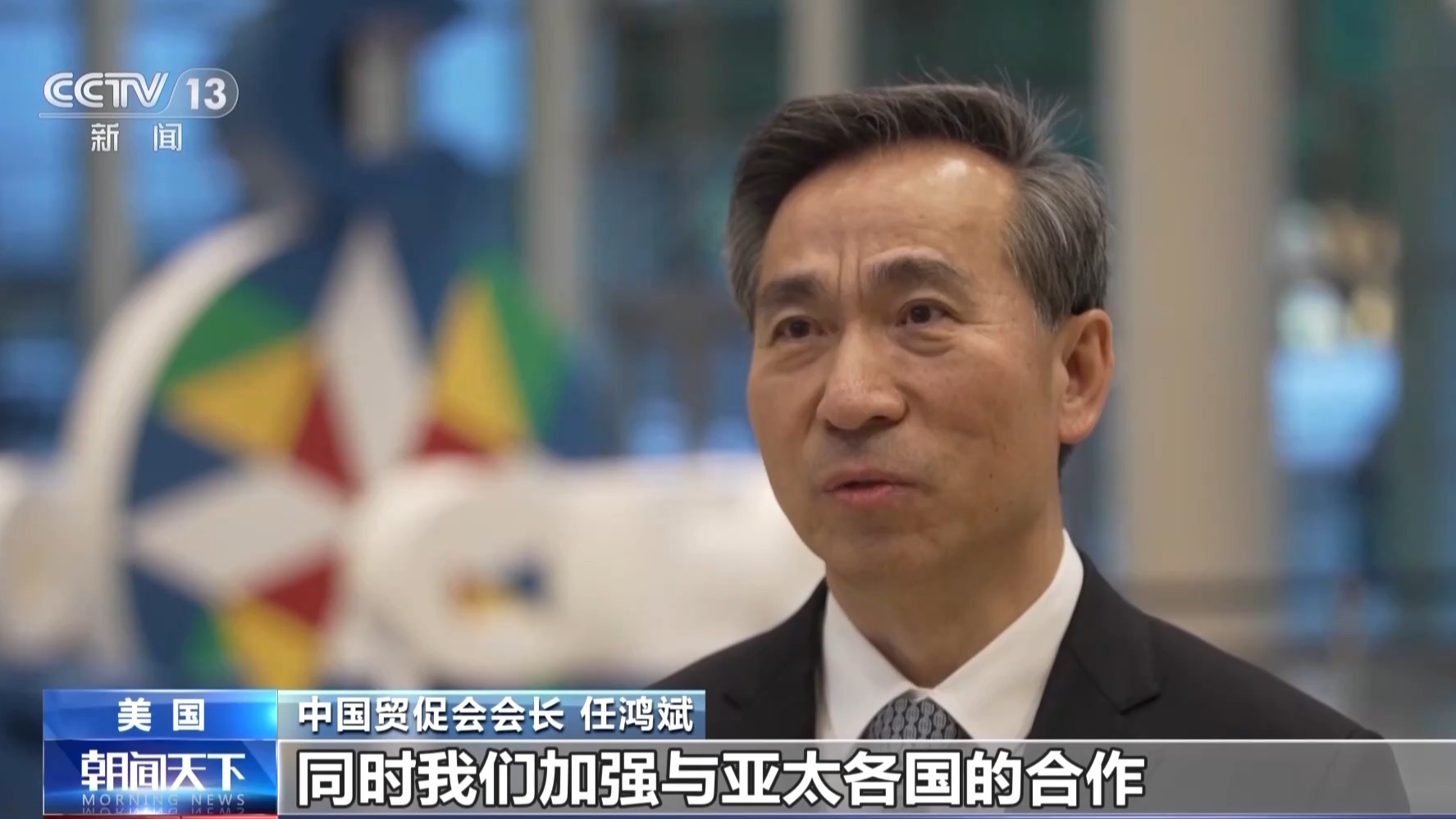 中国贸促会会长 任鸿斌:我们提出了加强产业链、供应链合作的倡议。同时也推动ABAC(亚太经合组织工商咨询理事会)出台了人工智能的声明,同时我们加强与亚太各国的合作,特别是经贸交流,来推动亚太区域经济繁荣和全球经济的复苏。