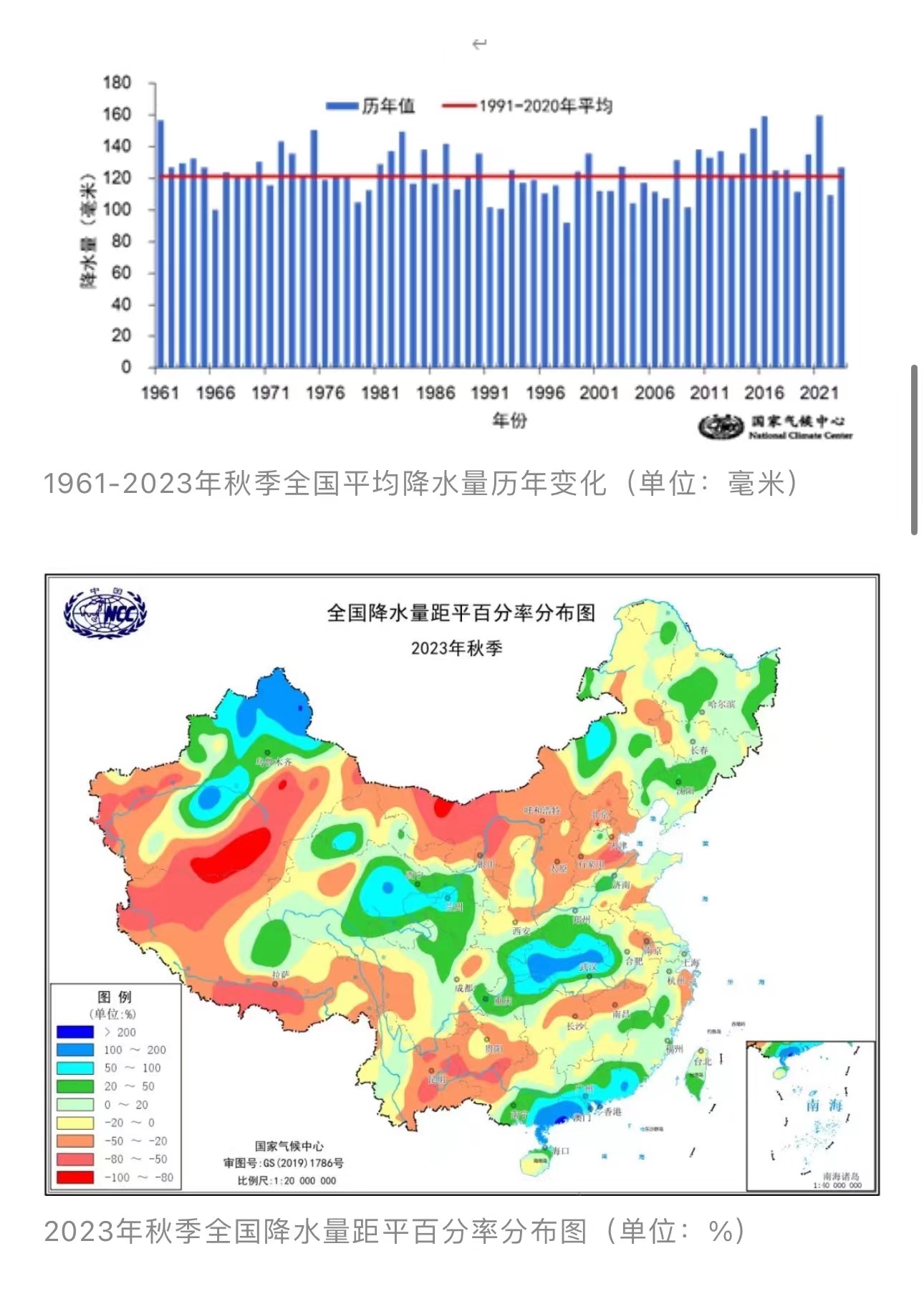 季内,甘肃敦煌(37.4℃,9月4日)、瓜州(36.8℃,9月5日)等66个国家气象站日最高气温突破或持平当地秋季历史极值;东北及河北、内蒙古、山东、陕西等地共36站出现极端日降温事件,黑龙江五大连池(17℃,11月3日)日降温幅度突破历史极值。