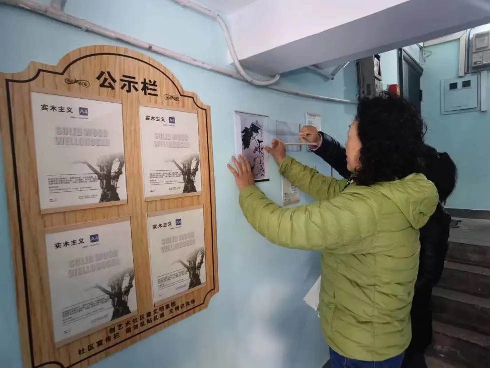 工作人员将征集到的作品按照楼门、题材分别装饰在13个楼门楼道,不仅美化了楼门环境,也为居民提供了展示自我的平台。改造完成后,老楼门顿时变得“时尚”起来。“以前没有作品展览的时候,整个墙面灰灰的,感觉非常单调,如今,楼内的墙面变得非常美观,感觉特别温馨”。社区邀请居民一同走进109号楼参观,整洁的楼道、干净的墙面、精致的作品,让大家忍不住赞叹。社区工作人员介绍,墙上的作品会根据主题、内容定期进行更新,让居民持续有新鲜感和自豪感。