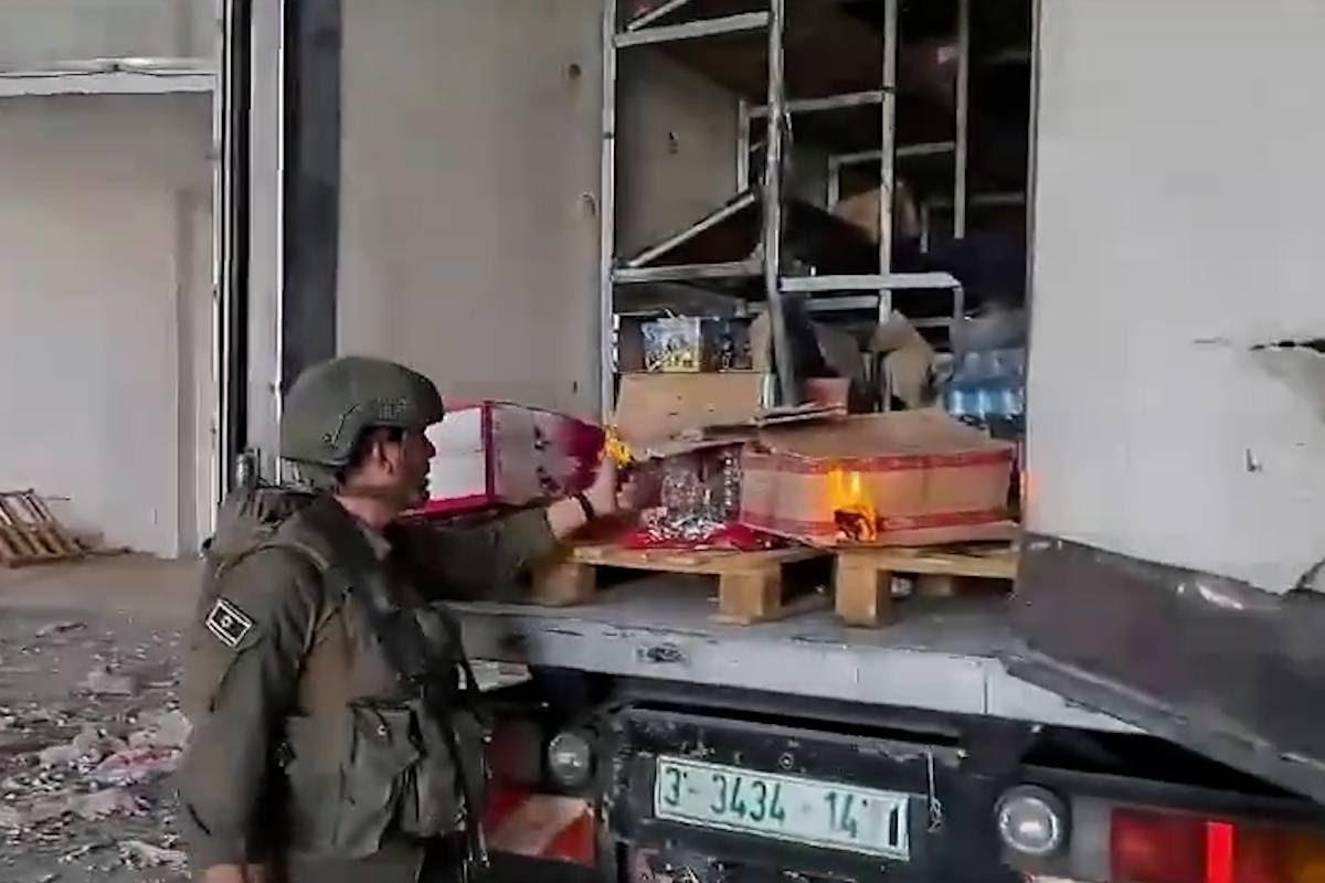 △以军士兵在加沙地带焚烧食物的网络视频截图