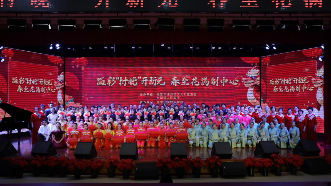 12月28日下午,由通州区文化和旅游局主办的“溢彩村晚开新元,春至花满副中心”2024年通州区“我要上春晚”系列活动“村晚联欢会”收官之站“台湖村晚”在北京新城职业学校举行。活动现场气氛热烈,歌曲、舞蹈、戏曲、乐器演奏等形式多样的节目轮番上演。