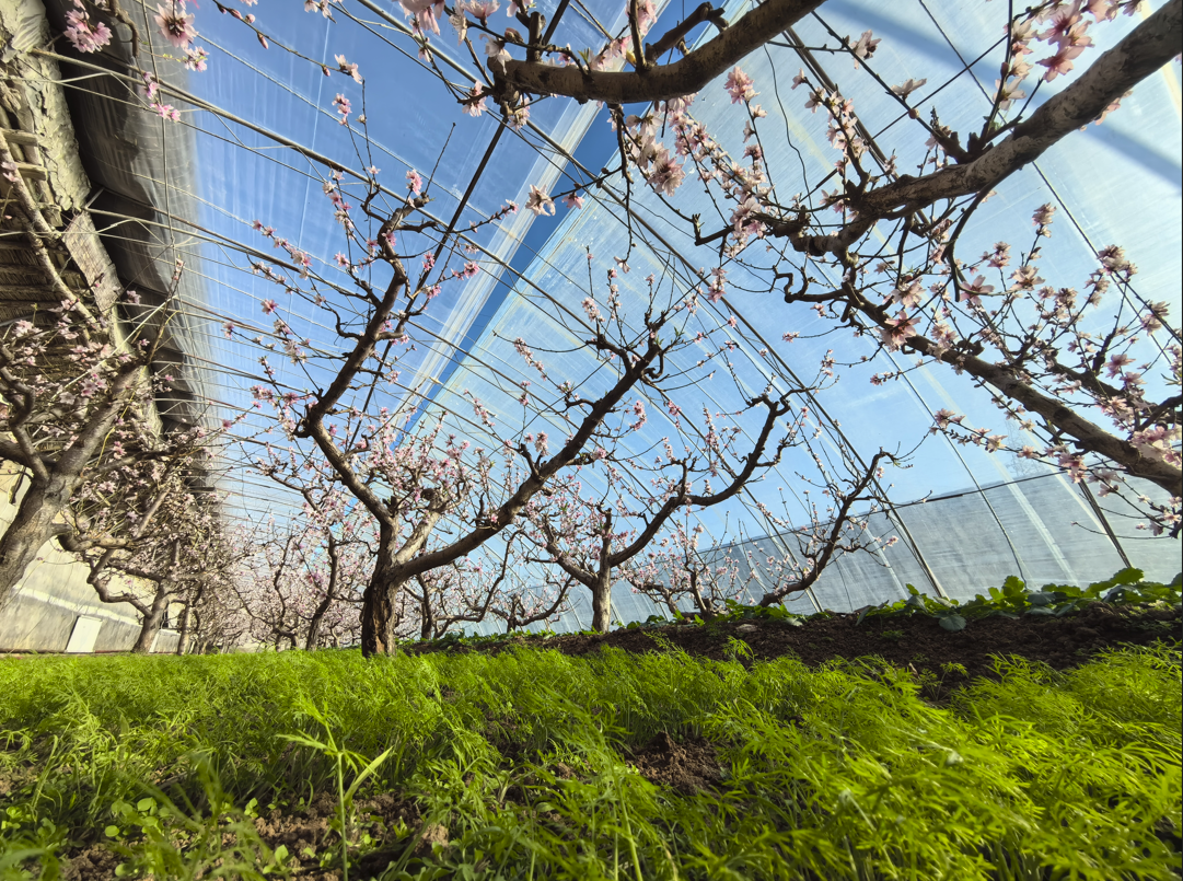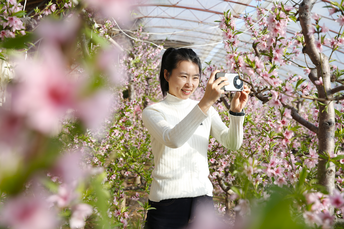 走进峪口镇兴隆庄村的一栋桃花大棚内,数百棵桃树的桃花正竞相绽放。这些桃树采用了矮化密植技术,桃树更紧凑,形成了一幅绝美的画面。