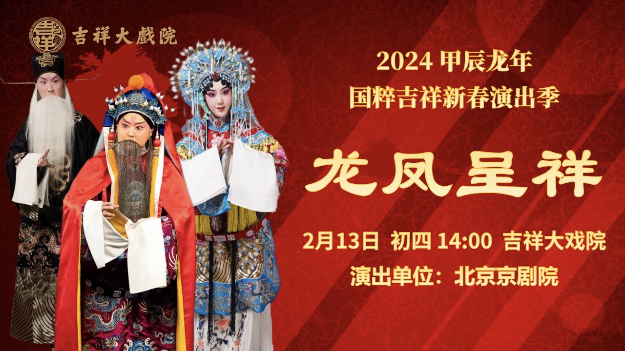北京老字号戏院吉祥大戏院推出国粹吉祥新春演出季,节日期间每日上演两台北京京剧院的京剧演出,包括《凤还巢》《红鬃烈马》《玉堂春》《锁麟囊》等多部经典剧目。有“戏楼活化石”之称的北京正乙祠戏楼,将上演北方昆曲剧院的经典剧目《牡丹亭》《天官赐福》。