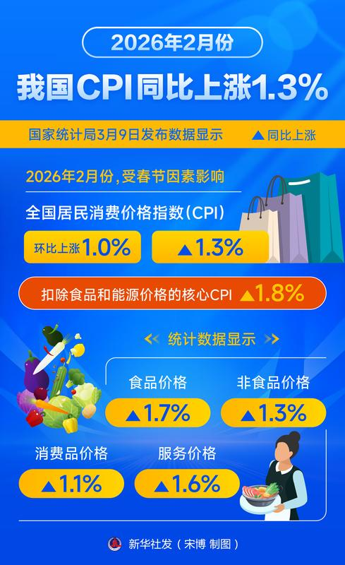 图表 | 2026年2月份,我国CPI同比上涨1.3%